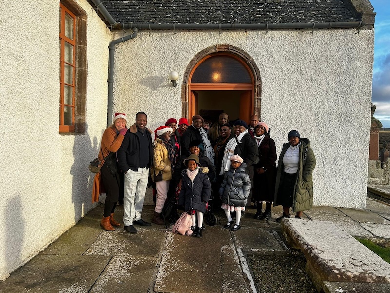 We had travelled there to sing at a local church that had invited members of the EAGA Choir to minister during their Christmas Day service. True to EAGA tradition, we lifted our voices in “Oh Happy Day.” In the serene, conservative Scottish setting, our joyful sound was met with surprising warmth, delight, and cheer. For our final piece, “Feliz Navidad,” the congregation, led by Reverend Janet, joined in with heartfelt harmony. When the service concluded, the church blessed us—and outside, one of our choir members Sister Tehillah Delpratt, struck up a conversation with Miss Jones and her daughter, Dorah.
